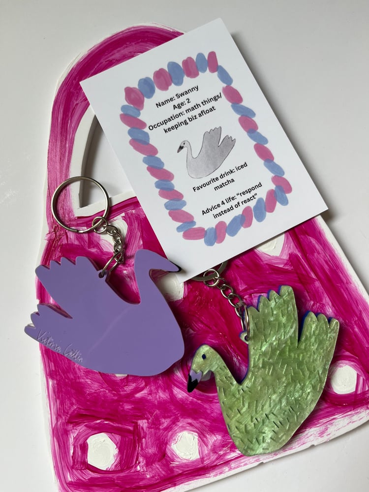 Swanny is perfect for gifting, sent in a branded Victoria Catten drawstring bag with her very own illustrated profile card.